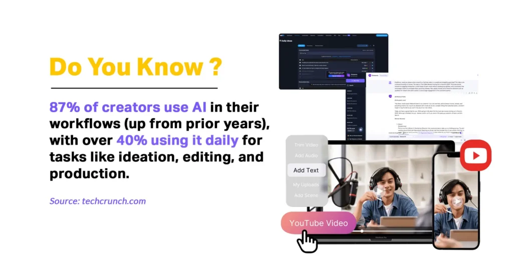 In fact, 86% of global content creators say they actively use AI tools to streamline creative workflows. Whereas 76% report that AI has accelerated their audience growth or business outcomes, underscoring how automation isn’t just a trend but a core to modern content production.