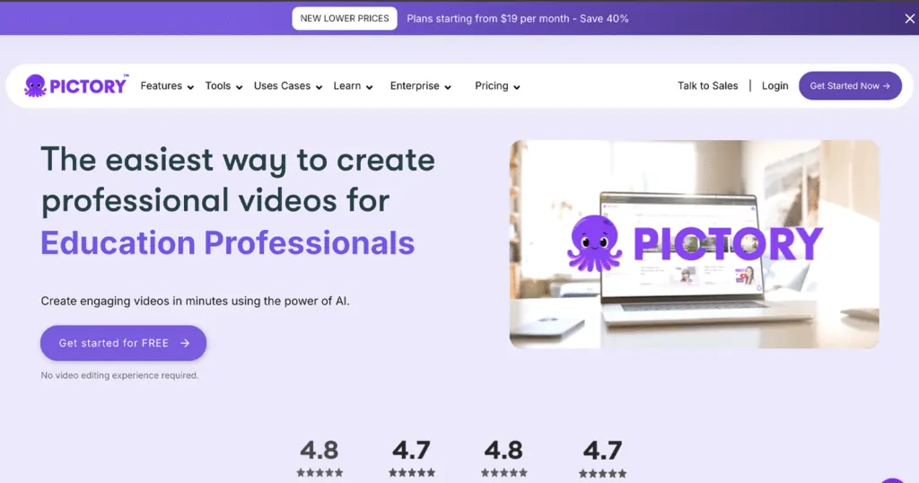 For businesses, flood marketing platforms with short-form content, Pictory AI has become one of the essential Repurposing AI Tools for Youtubers and content creators. Subscription costs begin at $19 monthly, but there is a free trial option available for testing before purchase.