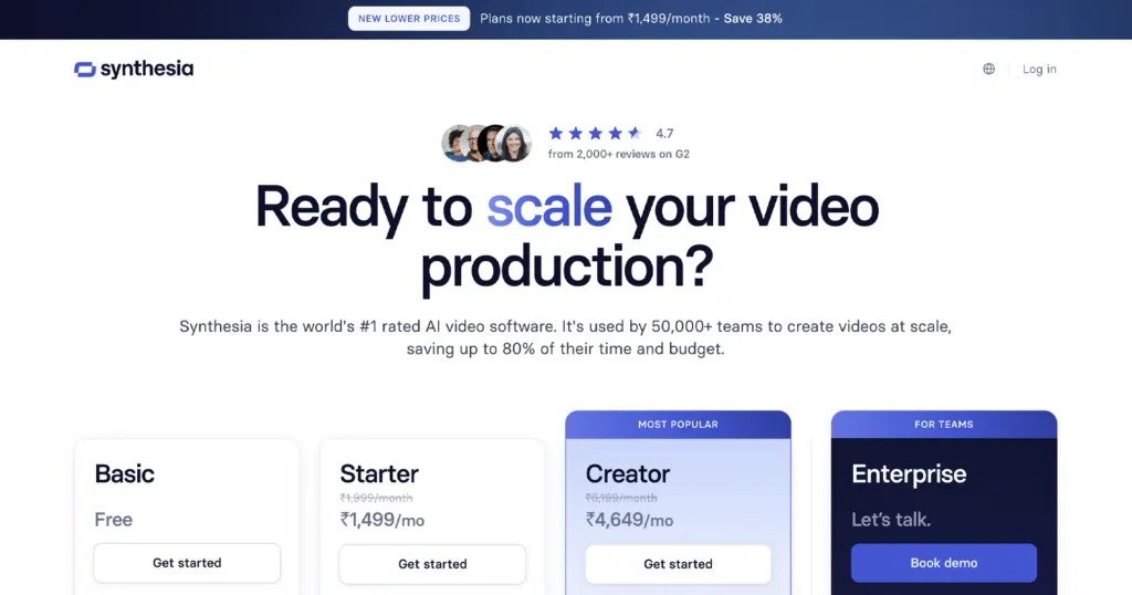 This platform is most popular among businesses creating explainer videos, product demonstrations, and tutorials. Synthesia is not your average AI tool for video content because it focuses on AI avatars and voiceovers. Pricing begins at $29 monthly with no permanent free plan.