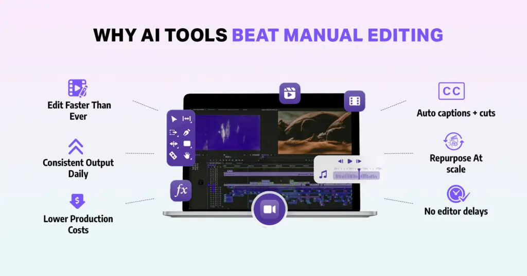By automating editing tasks like clipping, subtitles, and effects, AI tools allow businesses to produce high volumes of professional-quality videos faster, supporting marketing campaigns across multiple platforms.