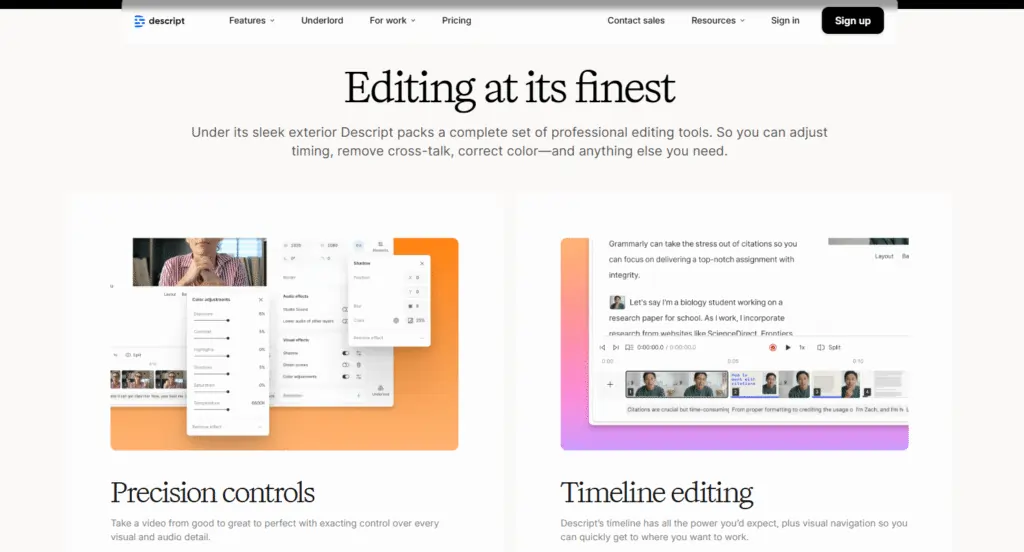 It focuses on editing through text-based transcripts. Plans start at $16 monthly, but there is also a free version with limited features. Descript is another of the best AI video editing tools that is making headlines in 2025.