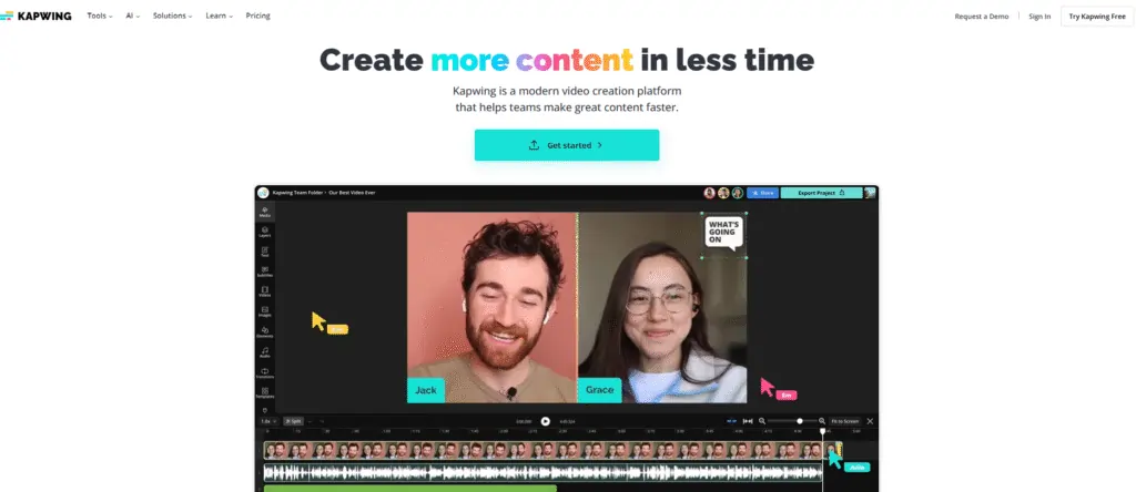 Social media managers love Kapwing because it automates video resizing, watermark-free exports, and adds AI-powered subtitles. As an AI tool for social media videos, it reduces the chaos of managing content across platforms through its smart automation. The online editor offers collaboration options that make it suitable for team-based projects.
