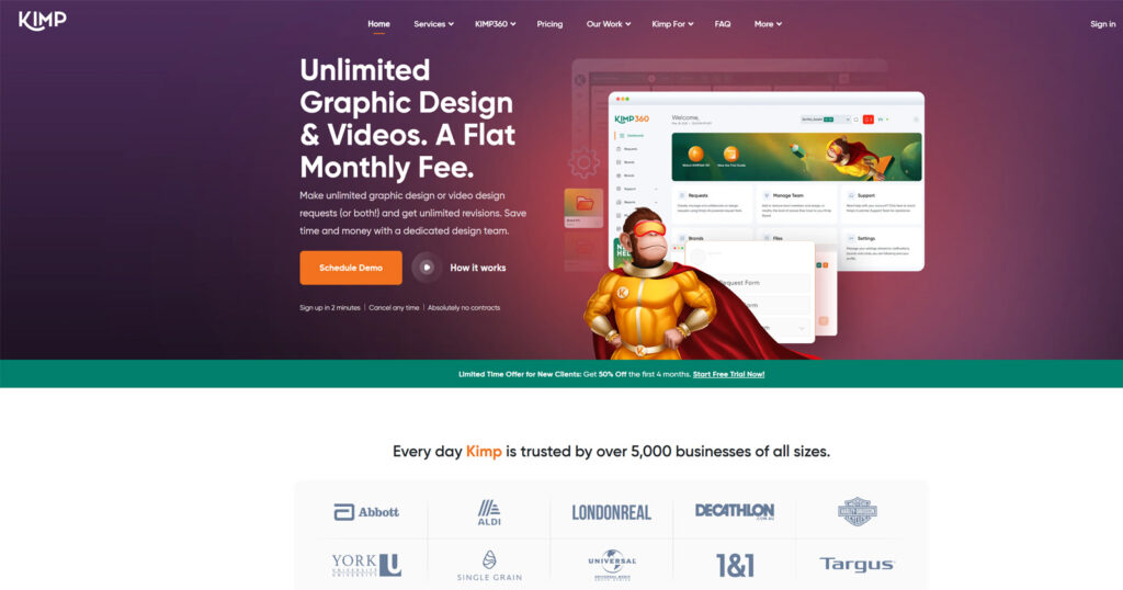 Kimp Video offers unlimited creative editing with a friendly interface that feels effortless. It’s tuned for creators juggling multiple formats or channels, helping maintain a unified brand look. Kimp’s setup easily fits content-heavy users wanting a consistent editing pace managed by pros, with affordable video editing plans that cover Animation and storytelling.