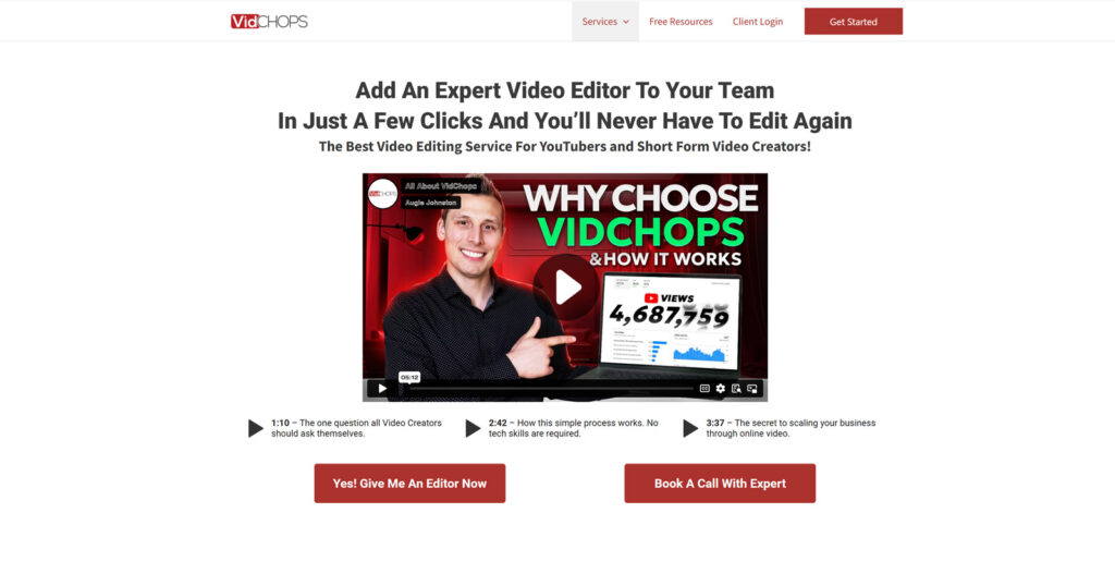 It’s a go-to for those producing tutorials, vlogs, or coaching videos who need fast turnaround and brand consistency. Vidchops understands YouTube creators better than most. For creators seeking reliable video editing services for YouTubers, Vidchops simplifies workflows through easy uploads, feedback tracking, and predictable costs that fit neatly into affordable video editing plans.