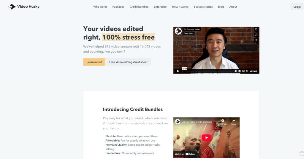 Video Husky remains a top choice among professional video editing platforms built for long-term partnerships. They handle steady content pipelines for YouTubers, brands, and Influencers efficiently. Unlimited revisions and direct client communication make them one of the best options for subscription-based video editing in 2026. It’s the supportive team many creators never knew they needed.