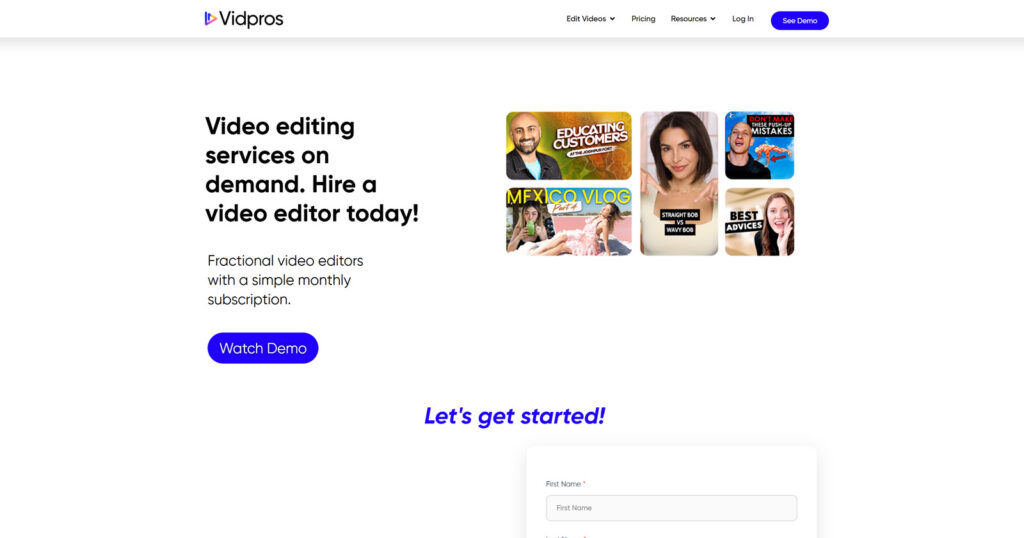 For anyone building a scalable content system, it stands out as one of the top video editing platforms to consider in 2026. Vidpros pairs creators with editors who become part of their content workflow. The experience feels smooth, structured, and dependable for longer projects. Teams using this service love its transparency and commitment to maintaining a consistent editing style.