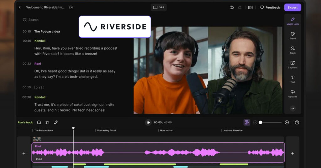 Its purpose is remote recording without lag, which makes it mighty useful for video recording tools for YouTube, podcasts, and even corporate content creation. Let’s look at some core features of Riverside.fm: