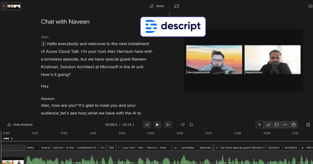 7 | Descript | Starts $16/mo, up to $50/mo | Fast editing, podcast & video |