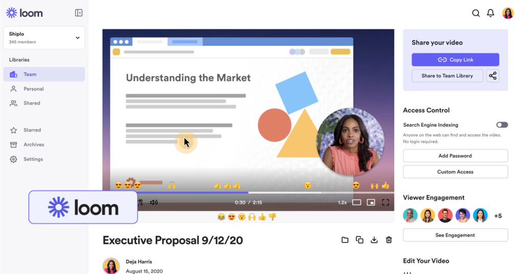Still, it stands out as reliable professional video recording software for quick clips. Its purpose is to record the screen or camera for walkthroughs, training, or explainer clips. Here are the most valuable features of Loom:
