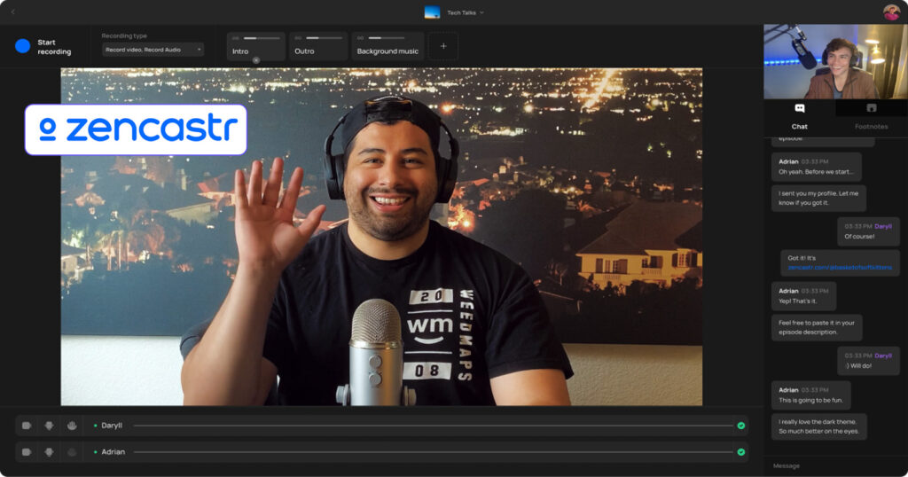 Zencastr is made for podcasters who need high-quality video and audio recording. Many creators use it as professional video recording software for podcasts, guest interviews, or remote collaborations. It works directly in the browser and saves separate high-resolution tracks for editing.