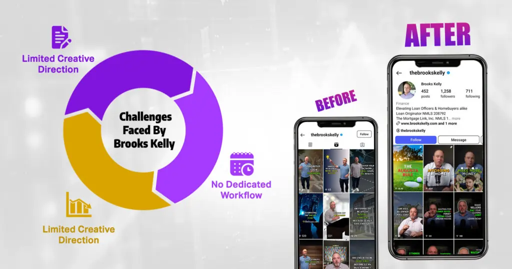Running a mortgage business is already a full-time job, and posting on Social Media felt like another job on top of an already packed schedule. Between handling client applications, market research, and keeping up with regulations, Brooks barely had time to breathe, let alone edit videos.