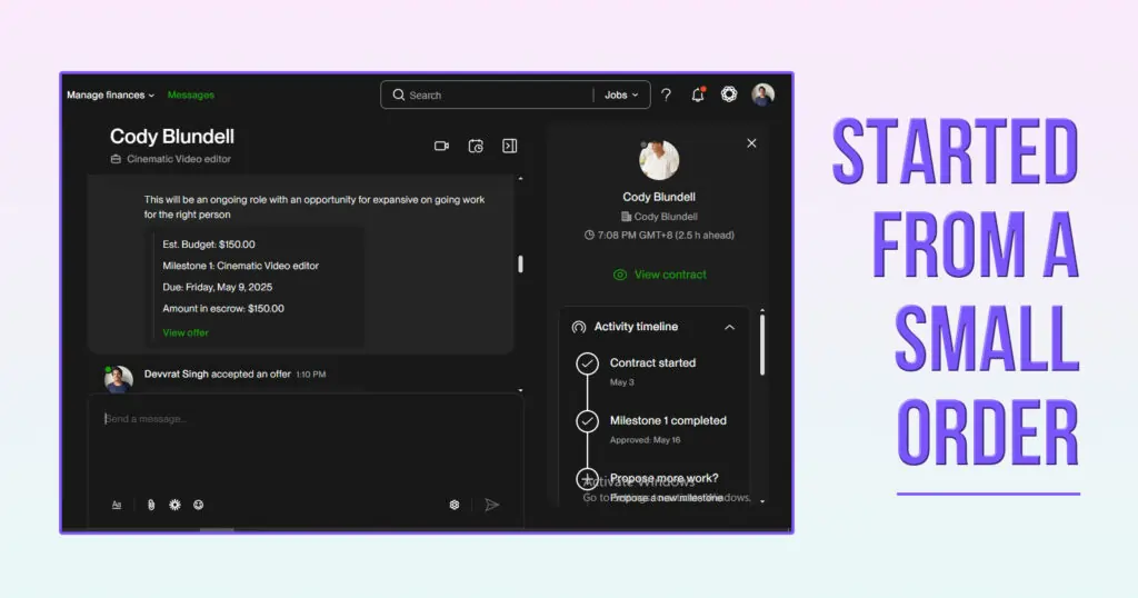 We saw Cody’s request, understood the urgency, and jumped in right away. Since ShortVids also began on platforms like Fiverr and Upwork, our team was quick to respond. The job was small, just a $150 order, but the stakes were high; he needed those edits fast and done right.