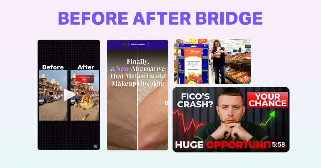 | Before‑After‑Bridge | Hope | Conversion | 30–60 sec | Warm Leads |