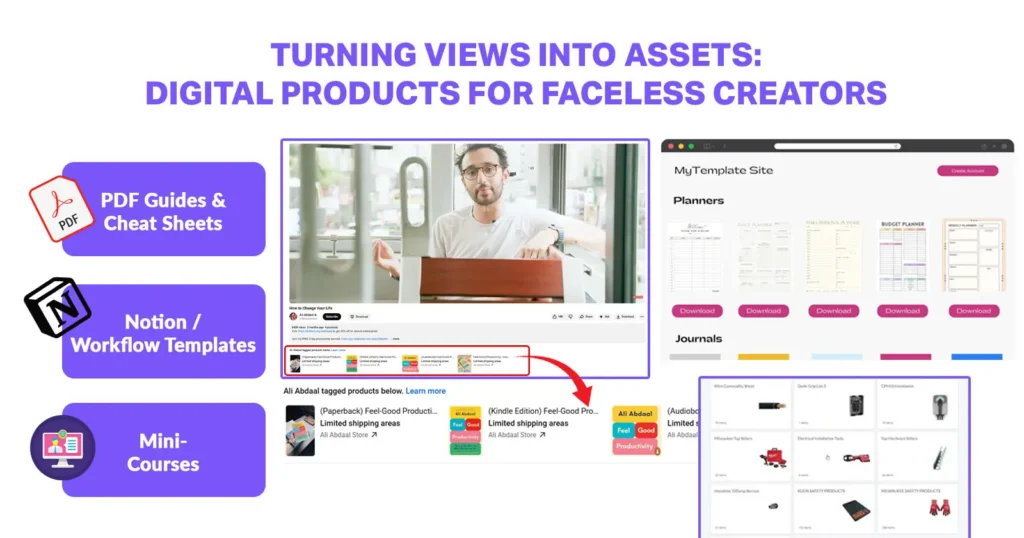 For instance, a faceless finance channel could sell a budgeting template, while a YouTube automation channel could offer a checklist for building faceless channels. These products provide direct solutions for viewers’ problems, making monetization practical and scalable without relying on personality-driven trust.