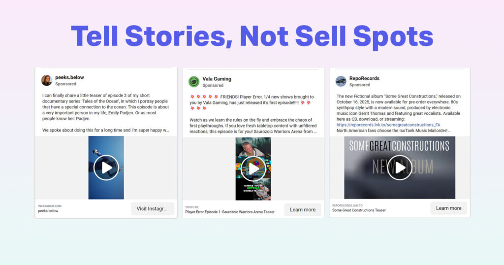 Creative diversification involves producing Multiple Video Formats, styles, and hooks tailored for varying buyer stages. Facebook & Meta Ads report that in many campaigns, creativity (visuals, storytelling) accounts for 56% of ROI, meaning diversified visuals and hooks matter deeply. ShortVids helps Facebook ads for creators to Repurpose core visuals into multiple bites, maximizing the shelf life of ads and audience engagement.