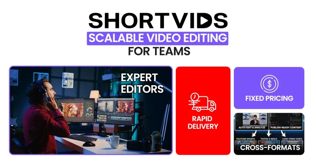 USA’s Video, media, and production teams are under constant pressure to deliver high volumes of polished video content while juggling stakeholders, tight timelines, and quality expectations. Editing backlogs, last-minute changes, and peak-demand crunch periods are common. ShortVids provides reliable support to each production role to move faster, reduce friction, and keep delivery timelines predictable.