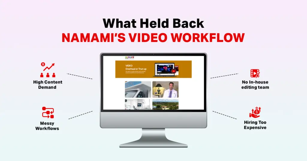 In this section, we highlight the four main challenges Namami Inc. faced as a service-based digital marketing agency without an internal video team. We also show how ShortVids’ personalized solutions addressed each with our video editing subscription.