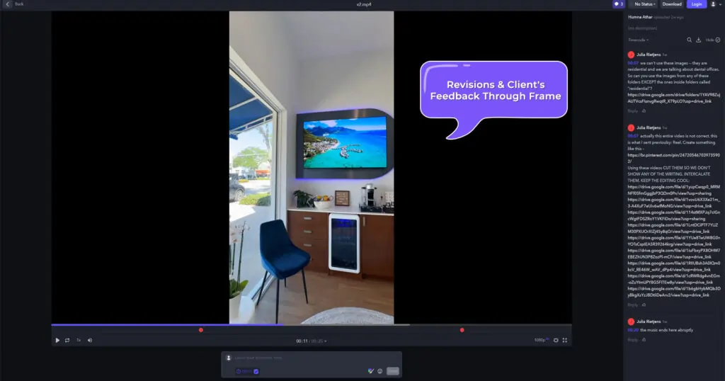 This platform enables Namami (and sometimes their clients) to easily comment directly on the video timeline, ensuring precise feedback and a smoother revision process.