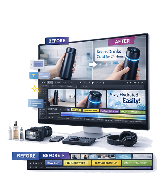 ShortVids provides product video editing services for brands, e-commerce businesses, and marketing teams that want to present their products professionally. Our editors transform raw product footage into polished videos designed for websites, social media, and marketing campaigns.