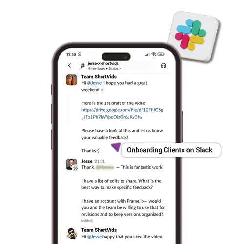 Our journey with clients begins on Slack, a real-time communication and collaboration platform. Once a client signs up with us, we onboard them to a dedicated Slack workspace where all communication takes place. Read more about: Why Unlimited Editing is a Smart Investment?