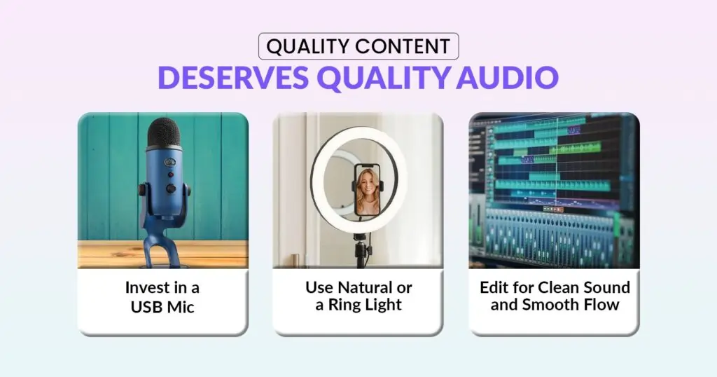 You don’t need a Hollywood setup to succeed on YouTube, but you do need clear sound and decent visuals to get more YouTube views. Most viewers will forgive a slightly grainy picture, but muffled or echoey audio makes them click away fast.