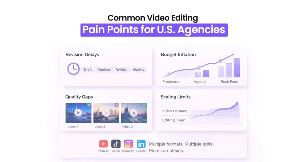 Internal teams can feel stretched when managing multiple campaigns simultaneously. Agencies relying solely on in-house editors often face bottlenecks that limit growth and efficiency.