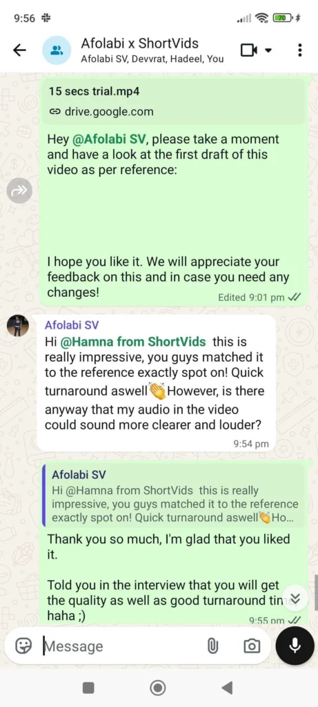 Great result and the communication with the seller was amazing. 10/10 recommend their service! I have worked with them for more than 15 videos and they have always done a great job while also being super responsive all the time!