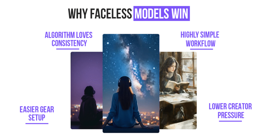 For anonymity, easy scaling, and algorithm boosts. Faceless content creation offers faceless channels advantages like no camera stress.