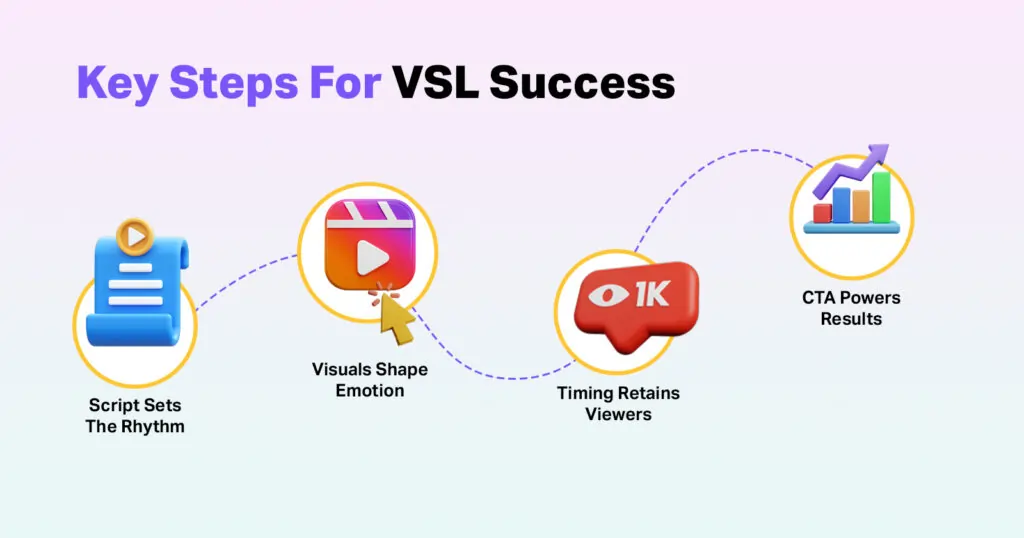 When perfectly created, it enhances the entire VSL production steps by increasing click-through rates and maximizing the video’s viral potential. This small detail aligns every part of your VSL creation process into a powerful conversion tool.