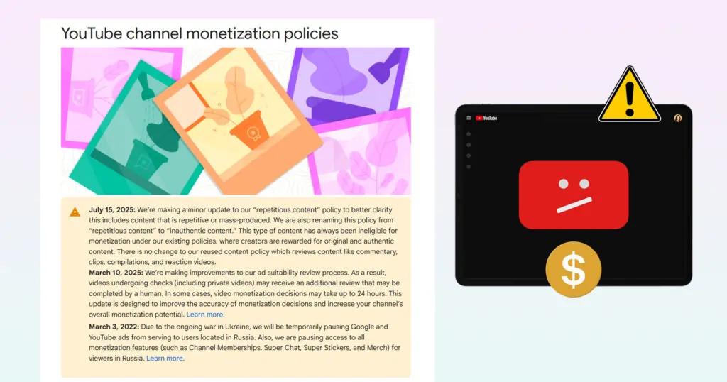 YouTube is removing monetization from videos that look automated or lack a personal voice. Creators must now show genuine commentary, insight, or storytelling, even if they run faceless channels.